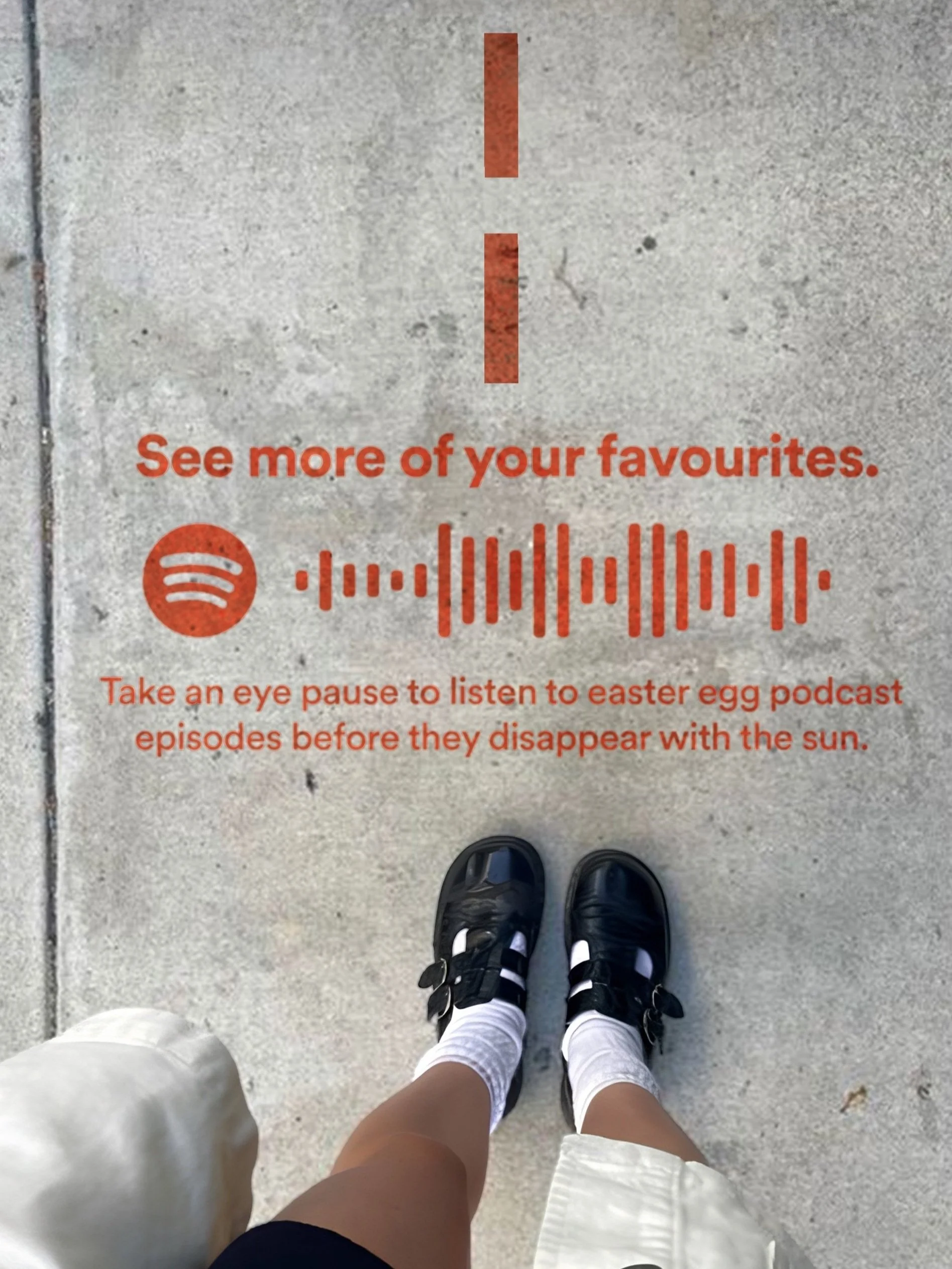 21GRAMS wanted Gen Z to get outside to protect their eyes, so they partnered with Spotify to create Eye Pause: the first-ever easter egg podcast listening experience that Gen Z could only unlock if they were outside on the move.