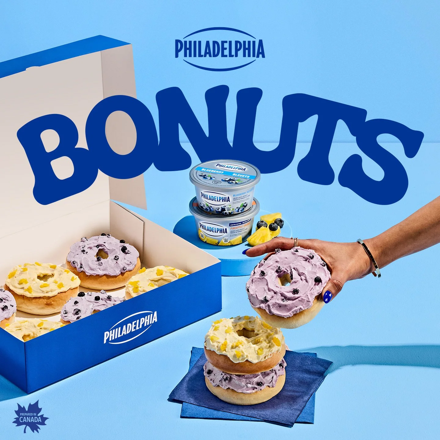 Introducing the Bonut. Made with Philadelphia’s new blueberry and pineapple flavours — it’s the best thing since sliced bagel.